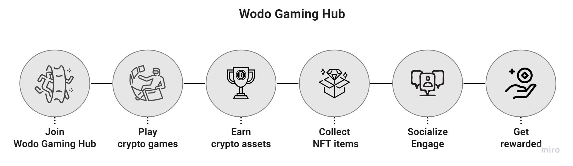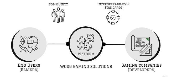 Wodo Gaming Ecosystem is built around the wodo gaming platform, wodo gaming solutions, and player & developer communities. Developers and players leverage the novel solutions that rely on the unique capabilities of the wodo gaming platform. The platform facilitates a collaborative environment where game developers enrich their games with interoperable blockchain, NFT, metaverse capabilities and publish their games to game players through the novel solutions and tools of the ecosystem. In contrast, game players onboard themselves quickly on the gaming hub without dealing with cumbersome details of the cryptocurrencies and NFTs, socialize with community members, play various new-generation games and ultimately earn cryptocurrencies and NFT assets.