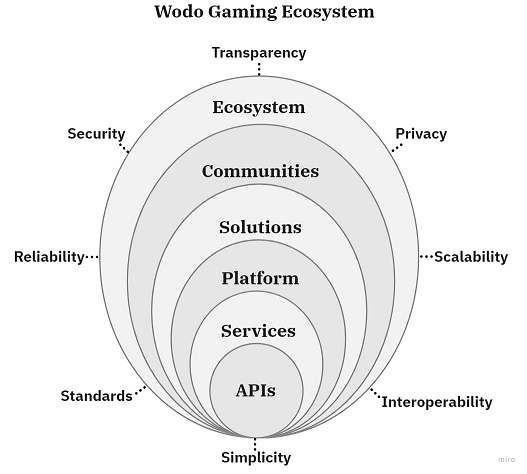 Wodo Gaming Ecosystem consists of interconnected technical and logical entities tailored to fundamental values.